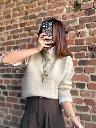Pull kaki beige col victorien