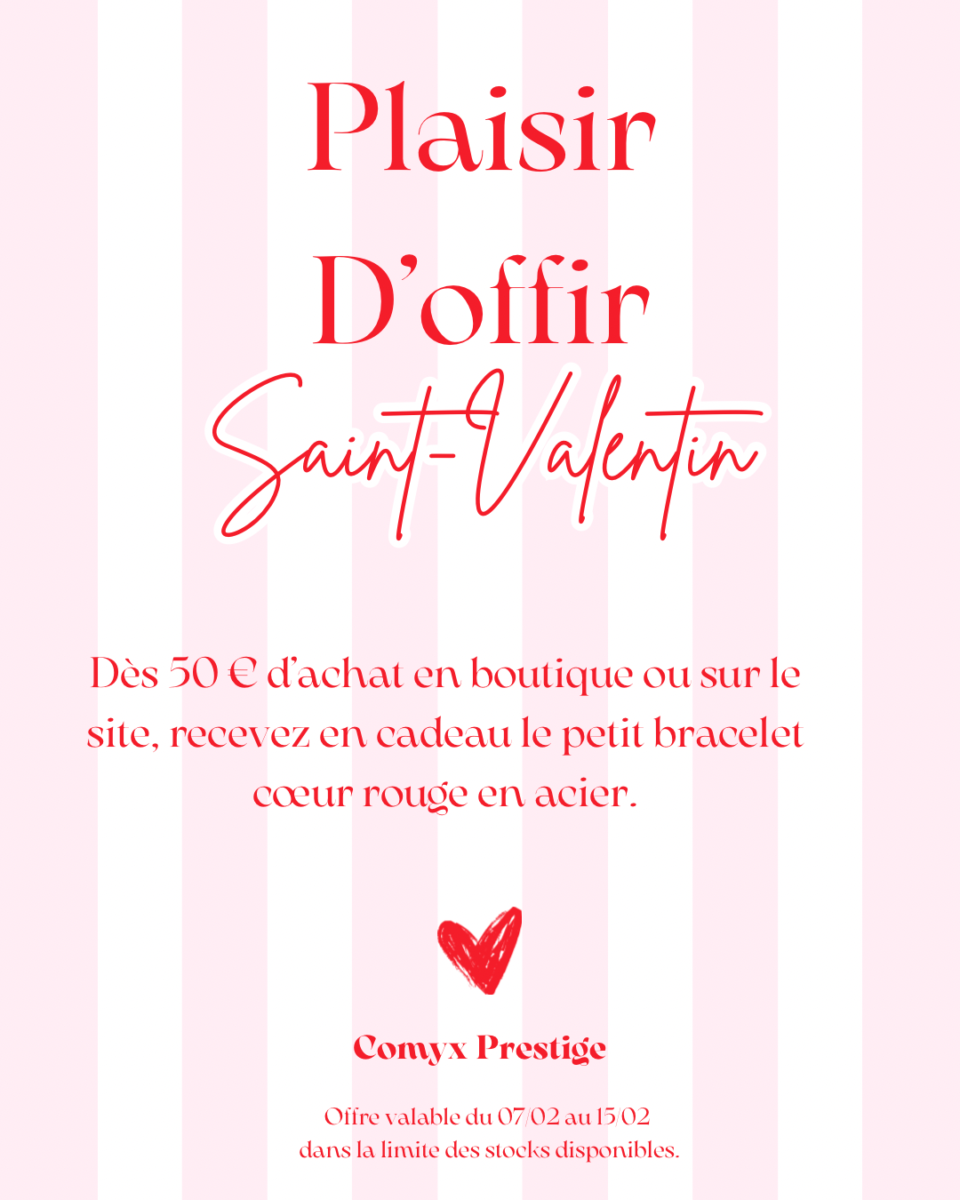 Pour la Saint-Valentin, recevez en cadeau ce magnifique bracelet dès 50 € d’achat, du 07/02 2026 au 15/02 2026