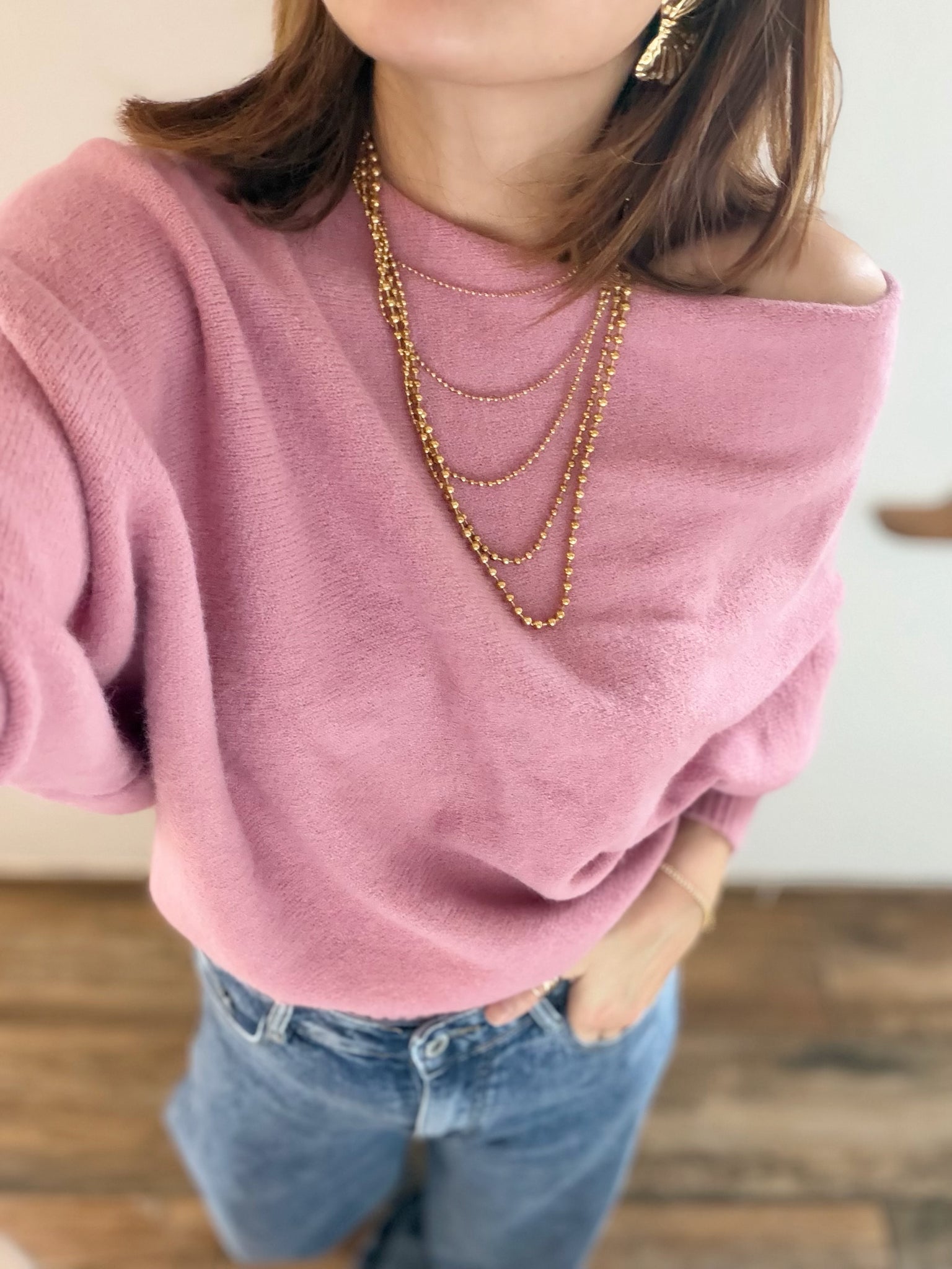 Pull asymétrique rose